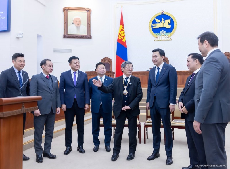| Улсын Их Хурлын дарга, гишүүд “Чингис хаан” одонт Академич С.Нарангэрэлд хүндэтгэл үзүүллээ |